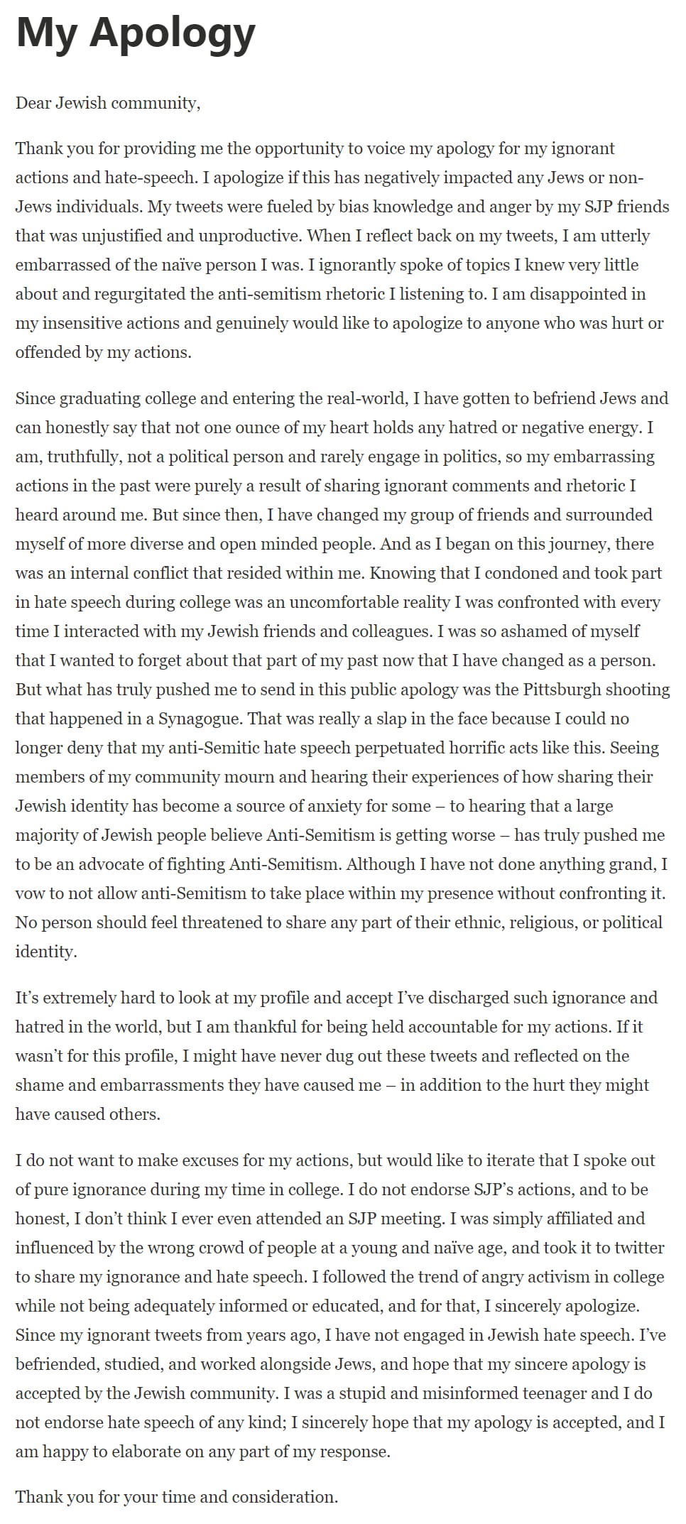 I could no longer deny that my anti-Semitic hate speech perpetuated horrific acts