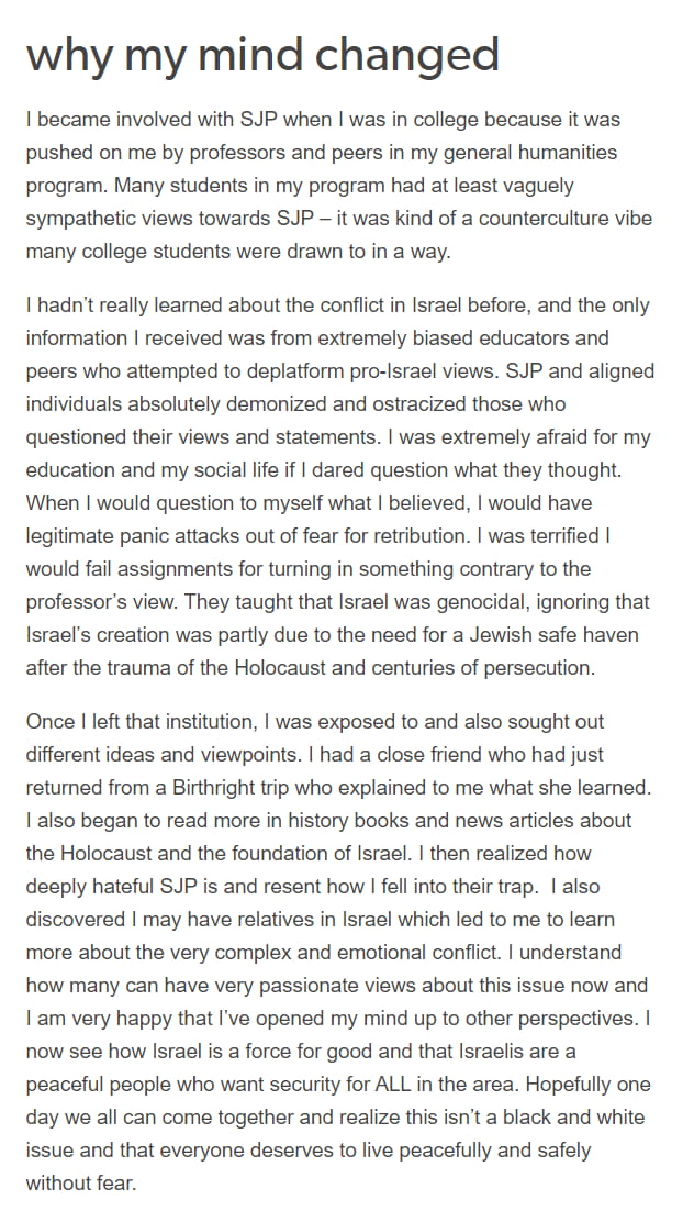I was extremely afraid for my education and social life if I dared question what [SJP] thought.