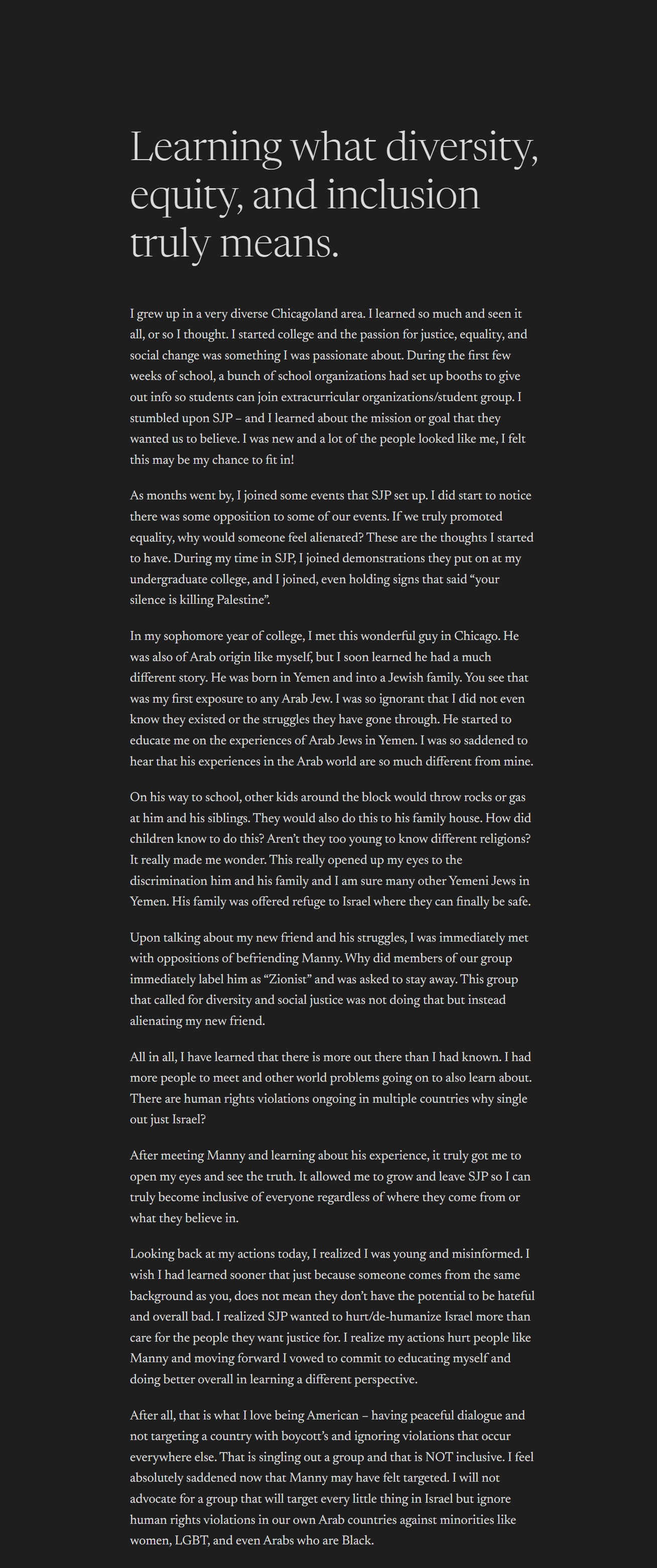 I realized SJP wanted to hurt/de-humanize Israel more than care for the people they want justice for.
