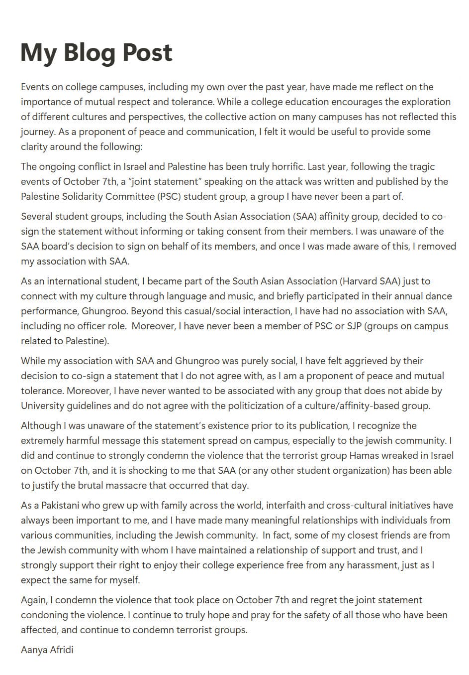 I did and continue to strongly condemn the violence that the terrorist group Hamas wreaked in Israel on October 7th, and it is shocking to me that SAA (or any other student organization) has been able to justify the brutal massacre that occurred that day.