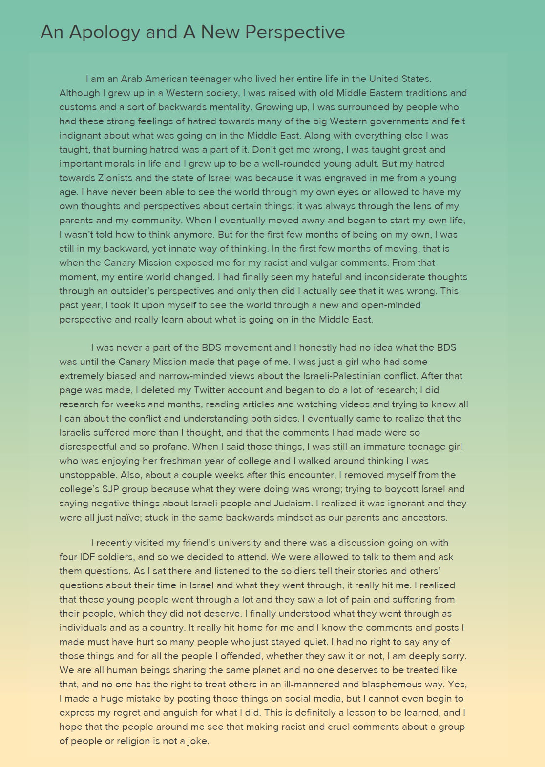 I removed myself from the college’s SJP group because what they were doing was wrong